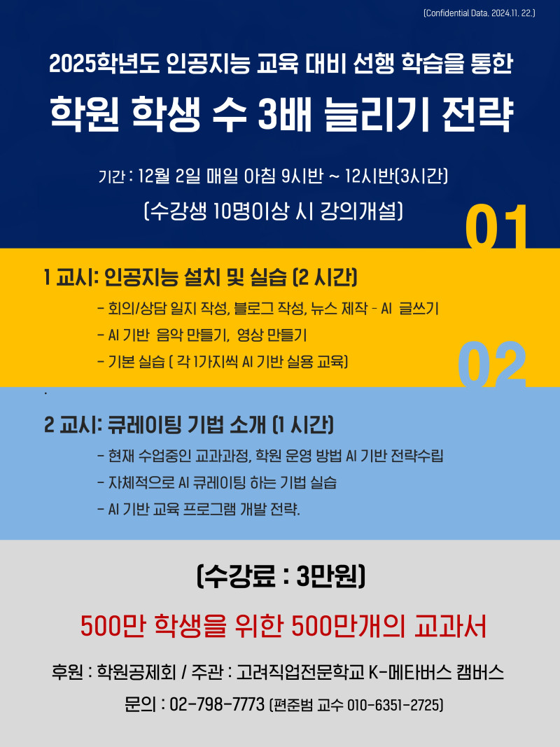 AI 교육과 AI교육을 통한 학생수 3배 늘리는 전략 교육이 있어 알려드립니다.